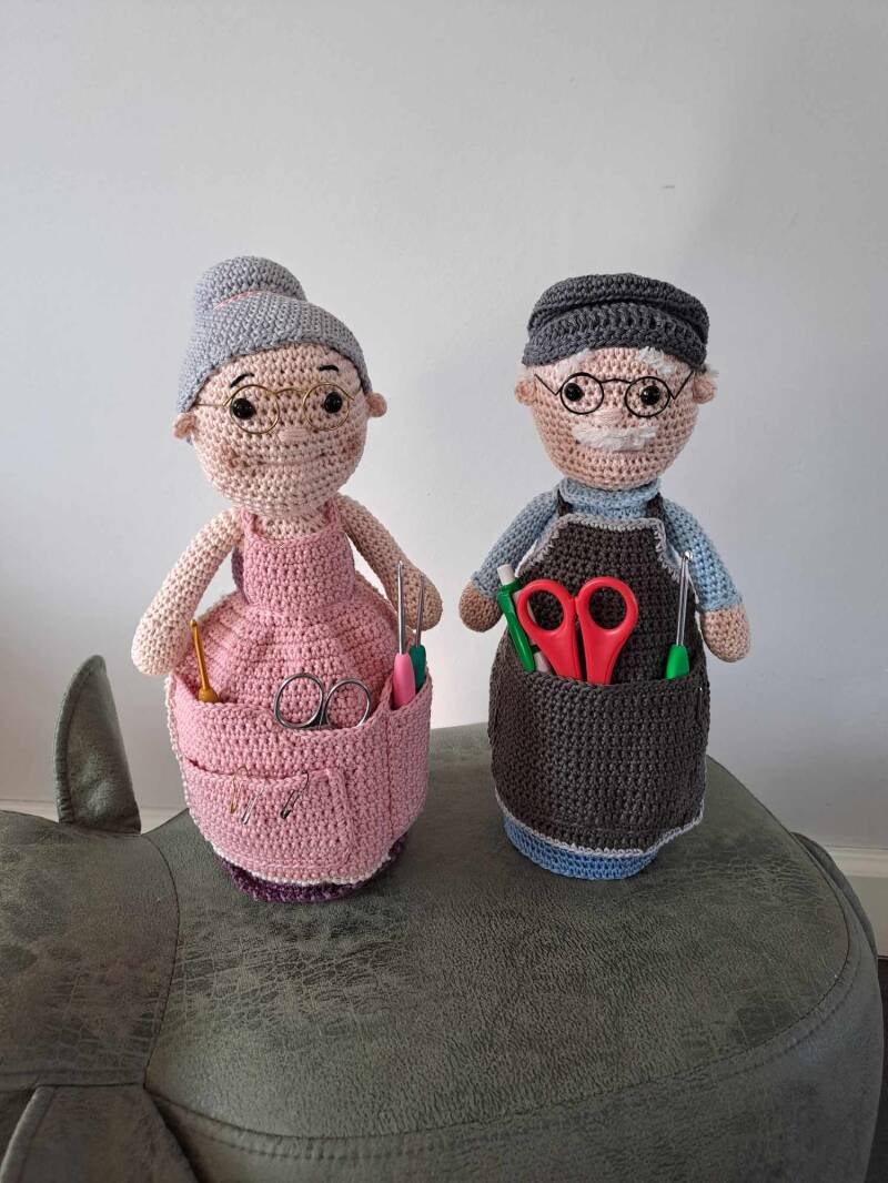 Opa & Oma als hulpsetje voor spulletjes in te bewaren.